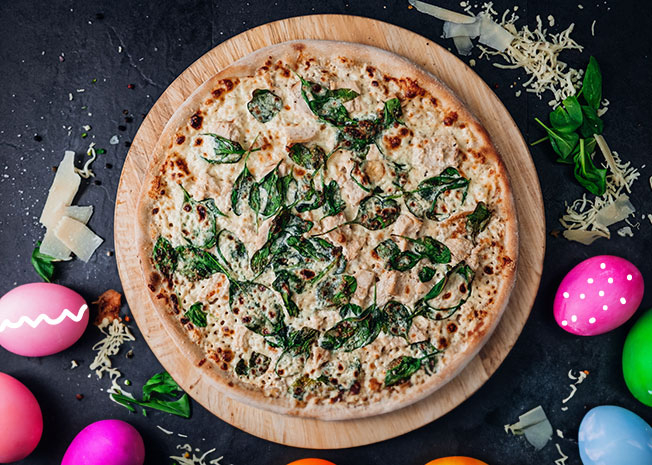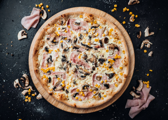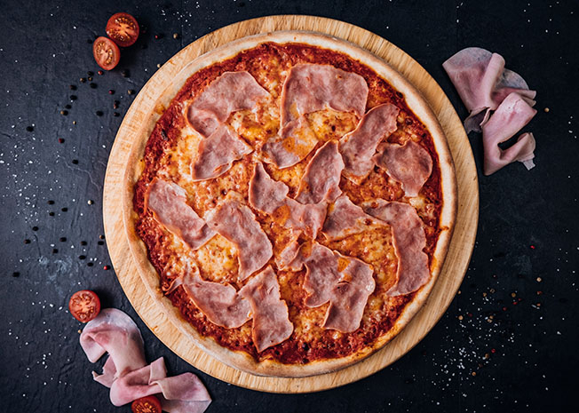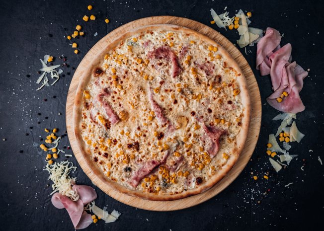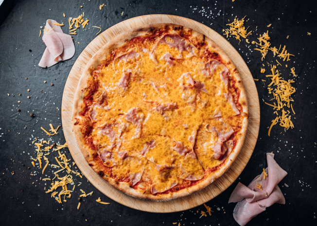 Platí pouze pro pizzu Double Cheese and Ham, Šunková s kukuřicí, Americana, Quattro Formaggi, Chicken Chorizo, Chicken Spinach.