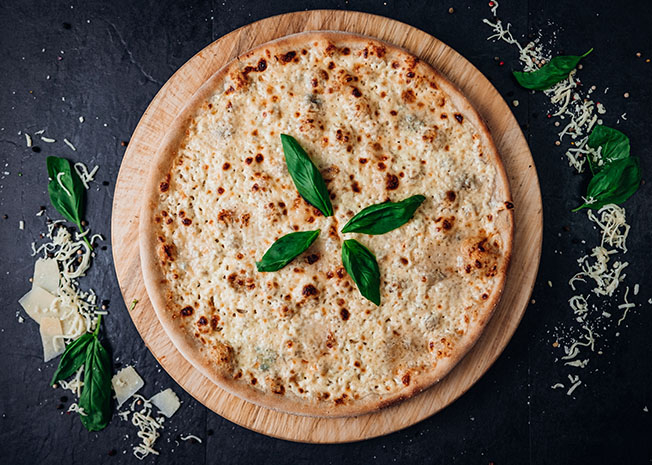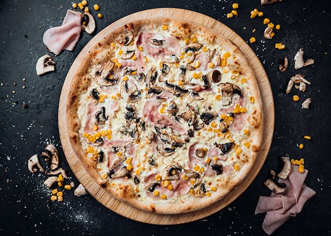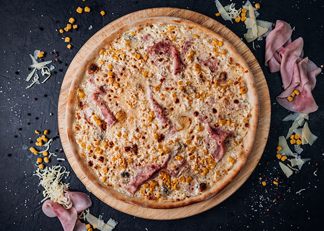 Platí pouze pro pizzu Double Cheese and Ham, Šunková s kukuřicí, Americana, Quattro Formaggi, Chicken Chorizo, Chicken Spinach.