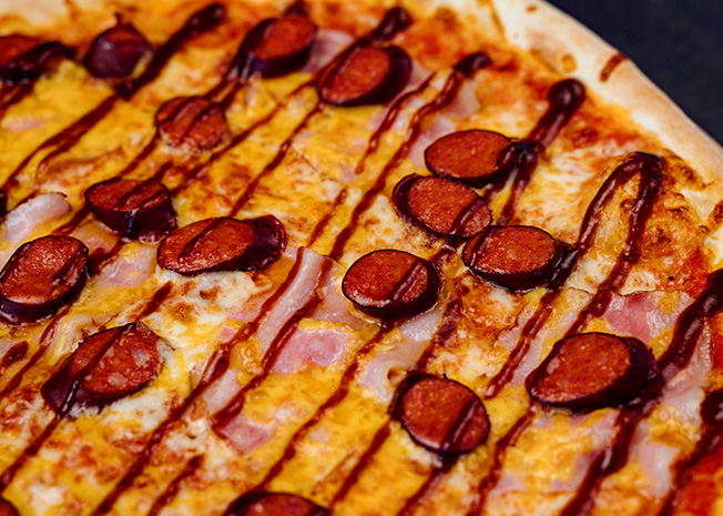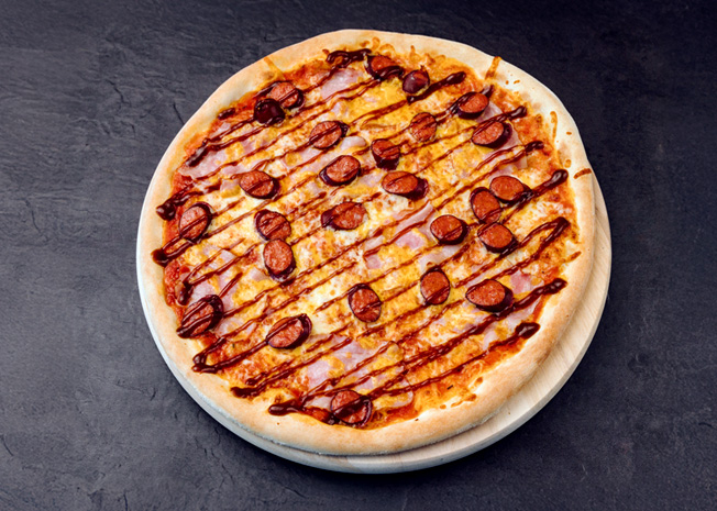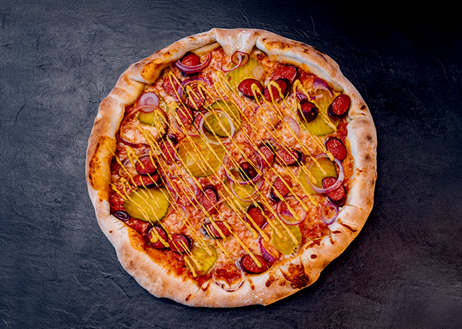 Legendární chuť teď i na křupavém těstě. Borkova pizza kombinuje všechno, co miluješ z Borkova hotdogu. Na poctivém základu se rozkládá rajčatová omáčka v okrajích pizzy a na pizze najdeš Borokov bidlo. Slanina, mexican pickles, hořčice a smažená cibulka tomu dodá ikonický křupavý finish.